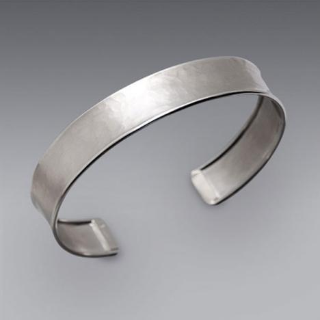 7-Inch 18K White Gold Hammered Cuff Bangle Bracelet 12.0mm, Satin