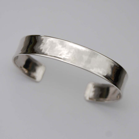 7-Inch 18K White Gold Hammered Cuff Bangle Bracelet, 12.0mm, Shiny