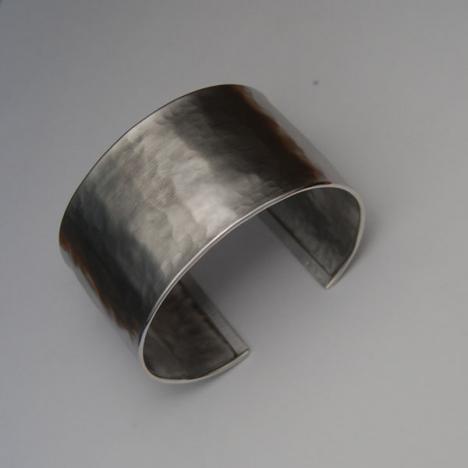7-Inch Sterling Silver Hammered Satin Cuff Bracelet, 37.0mm