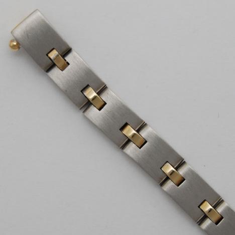 8-Inch 14K Yellow / White Satin Flat Link Bracelet