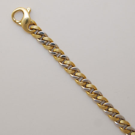 7.5-Inch 18K Yellow Gold Satin / White Gold Shiny Rounded Curb Bracelet