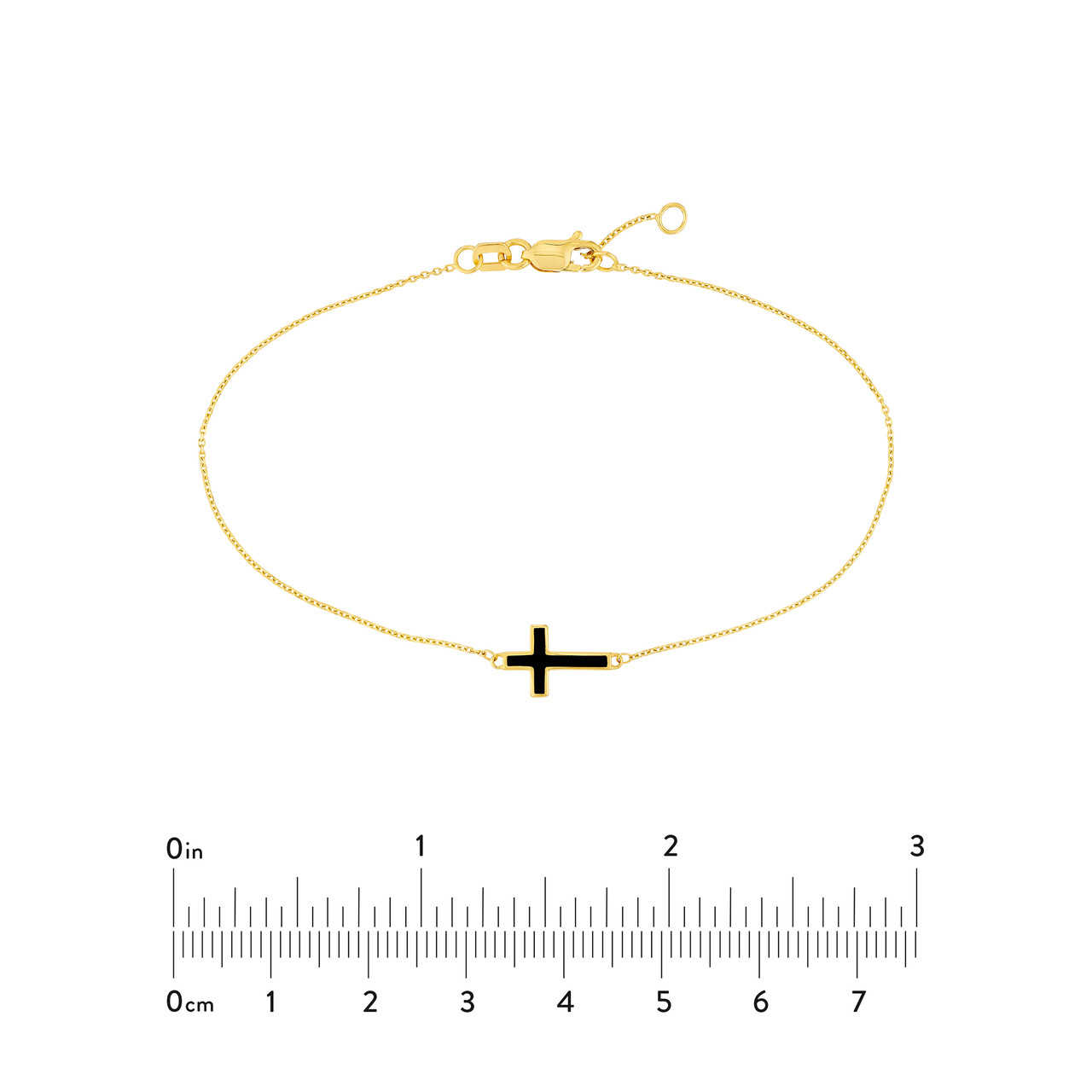 7.5-Inch Black Enamel Sideways Cross Bracelet