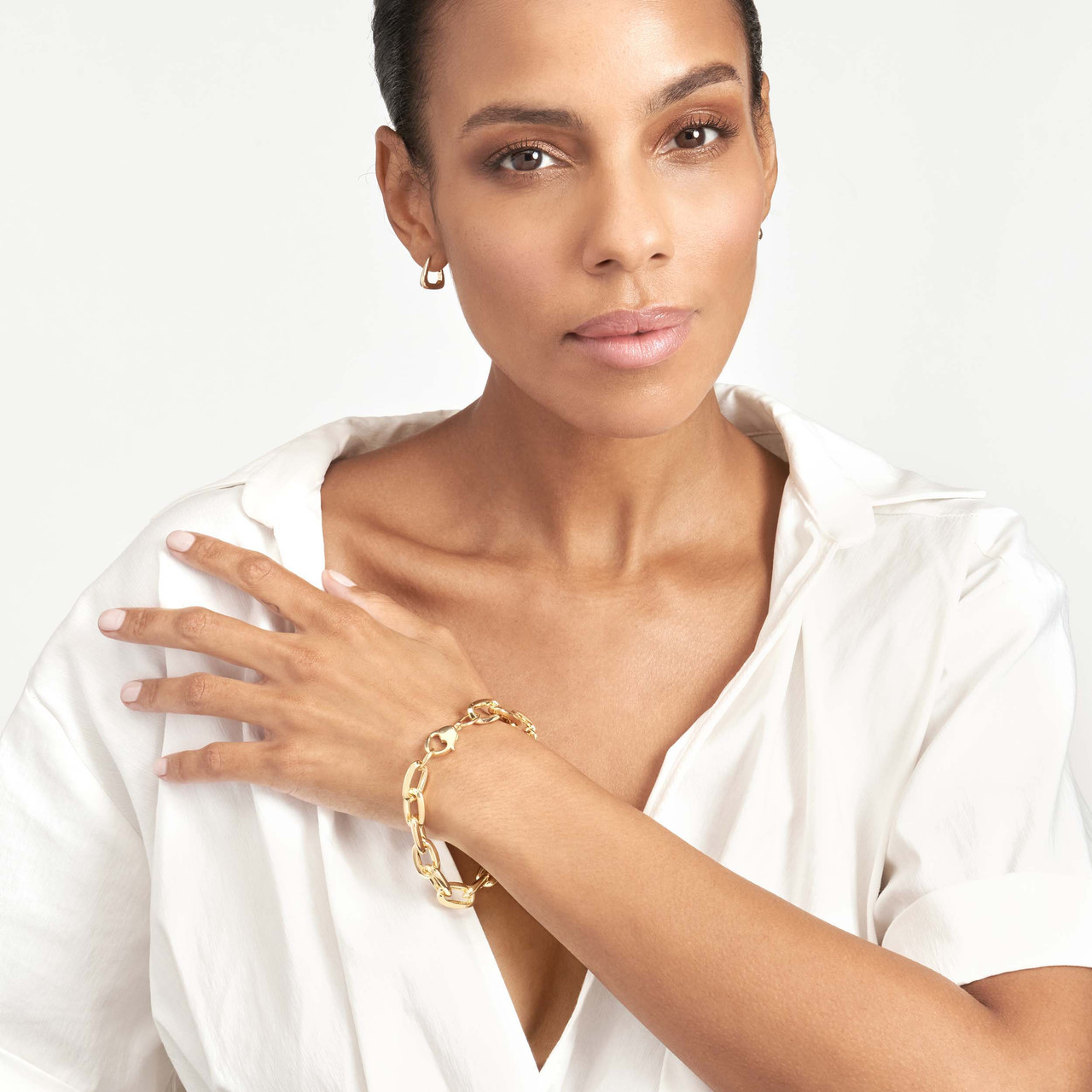 7.5-Inch Knife Edge Oval Link Bracelet with Heart Lock