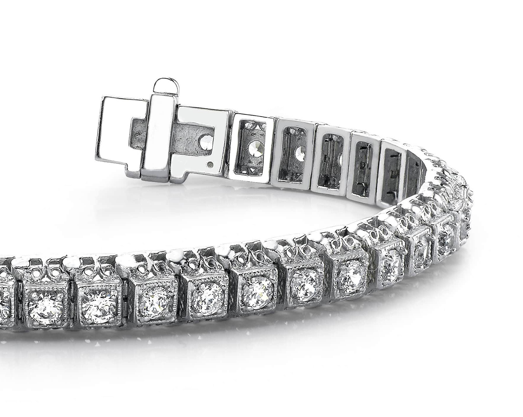 Millgrain Square Link Diamond Bracelet 1.3 Carat Total Weight