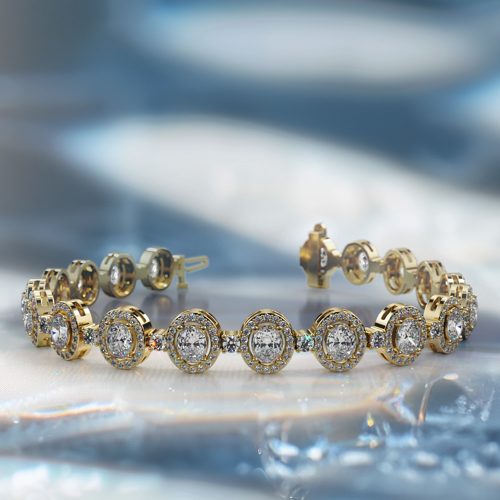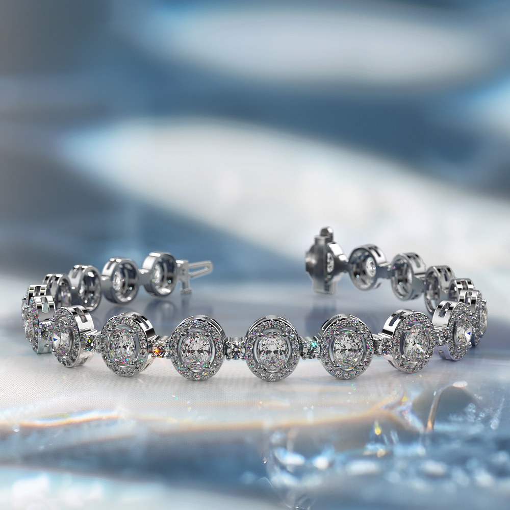 7-Inch Oval Link Bracelet with Oval Diamond Centers 6.36 Carat Total Weight