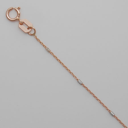 16-Inch 14K Rose Gold Cable Chain with White Gold Bars