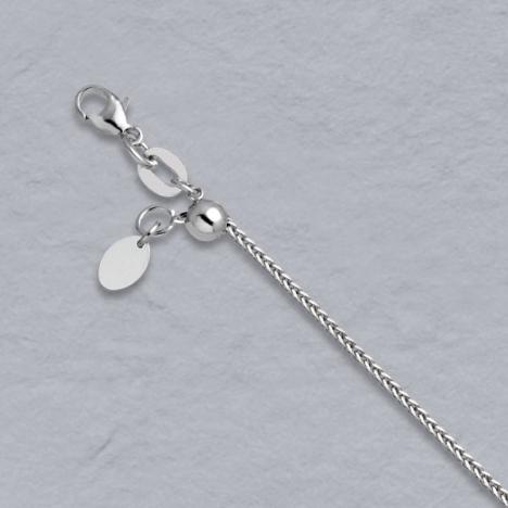 16-Inch 14K White Gold Adjustable Diamond Cut Square Wheat 0.8mm Chain
