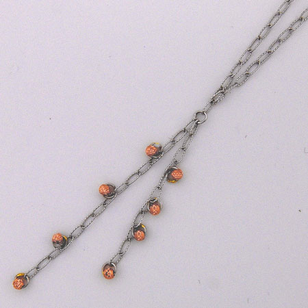 17-Inch 14K White Gold Open Link w/ Rose Gold Disco Balls ' Y ' Chain