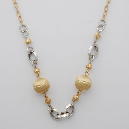 17-Inch 14K Yellow Gold Link Necklace with Yellow Gold Saturn Balls