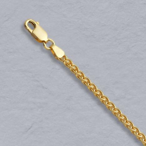 7-Inch 14K Yellow Gold Round Wheat 2.4mm Chain