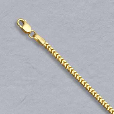 9-Inch 14K Yellow Gold Square Franco 1.8mm Anklet