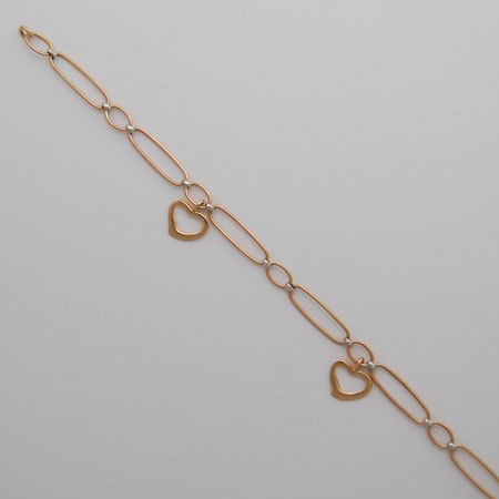 7-Inch 14K Yellow Gold / White Gold Link Necklace with Heart Drops