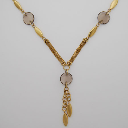 18-Inch 14K Yellow Gold ' Y ' Link Chain with Smoky Quartz