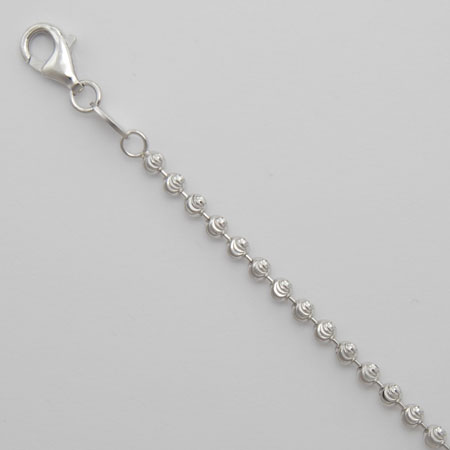 16-Inch Sterling Silver Moon Cut Bead Chain 3.0mm, Rhodium