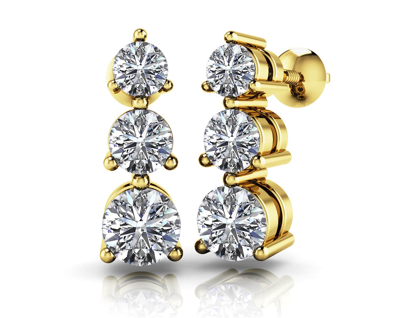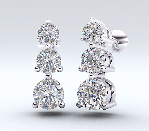 3-Stone Diamond Earrings 1/2 Carat Total Weight