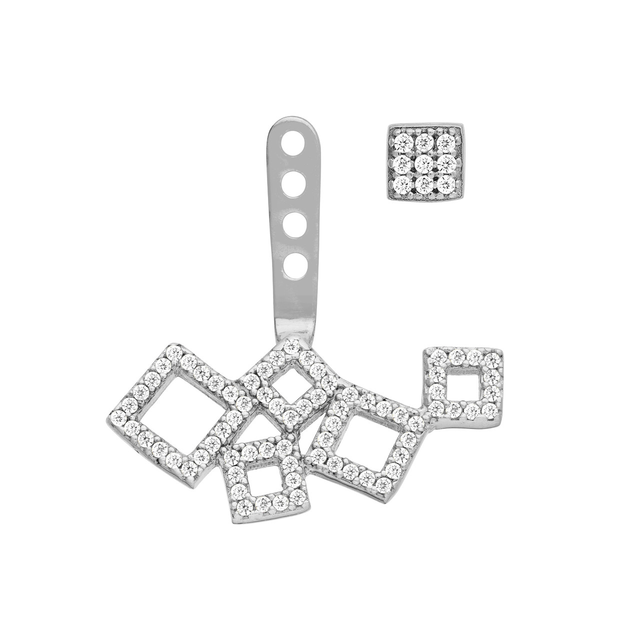 Cube CZ Stud W/Open CZ Cube Earring Jacket
