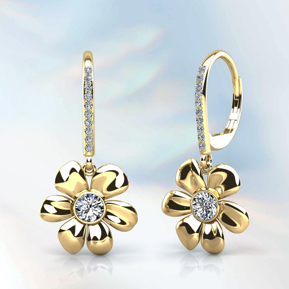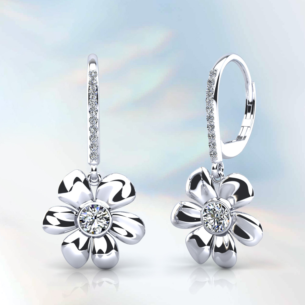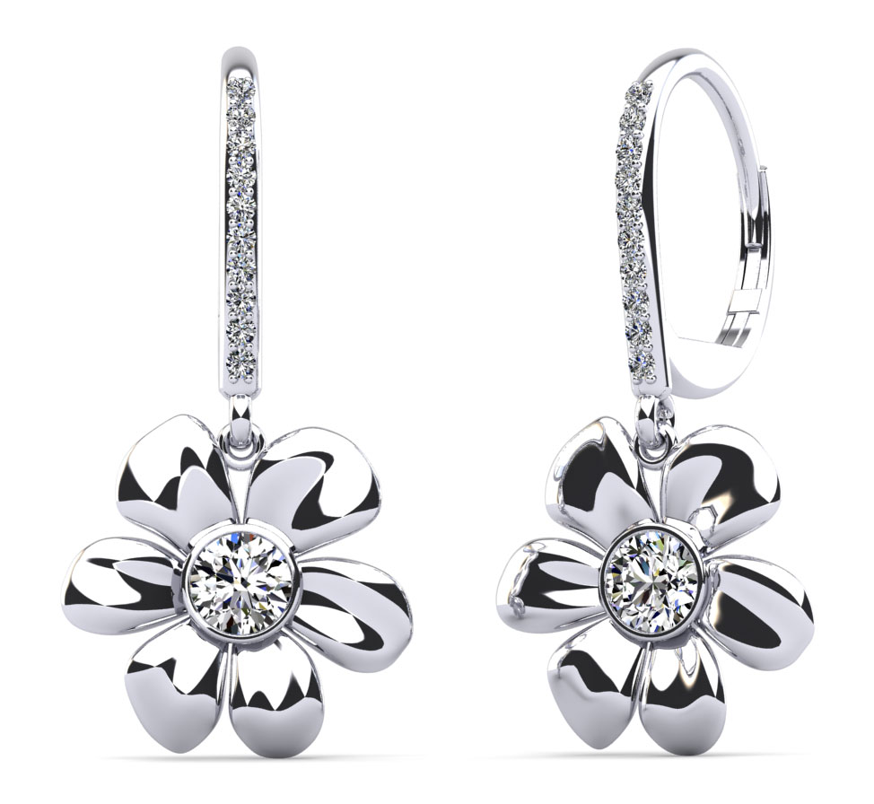 Elegant Flower Shaped Diamond Earrings with Center Diamond 1/3 Carat Total Weight
