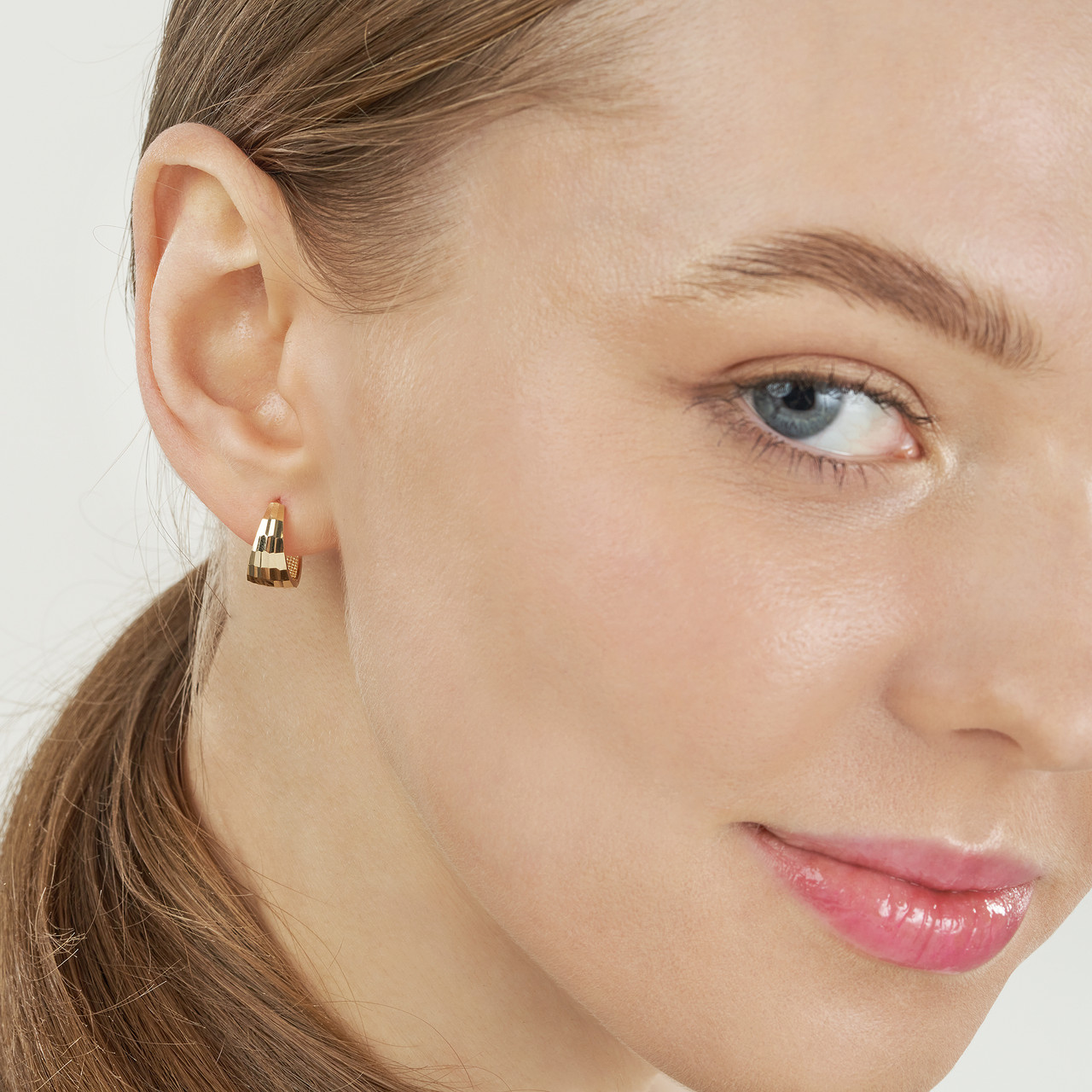 Mirror Diamond Cut Tapered Reversible Huggie Earrings