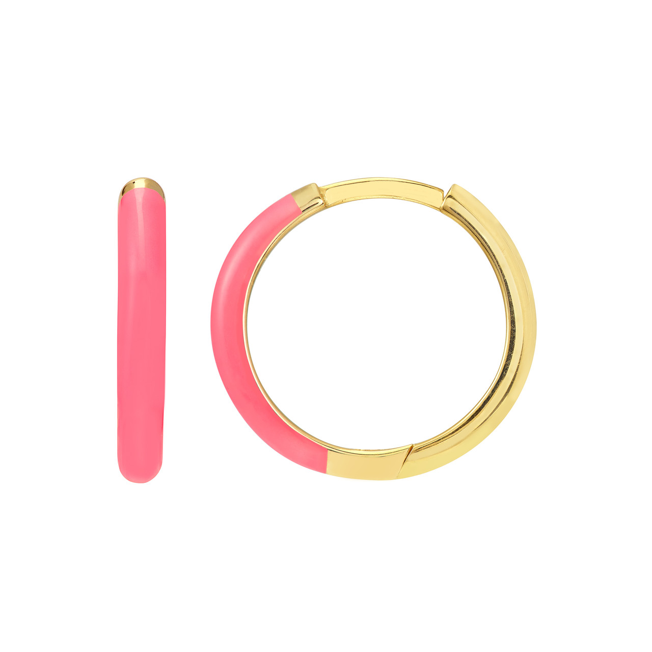 Neon Pink Enamel 1/2 Polished Hoop Earrings