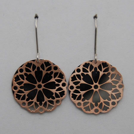 Rose Sterling Silver Laser Cut Snowflake Disc Over Sterling Silver Disc