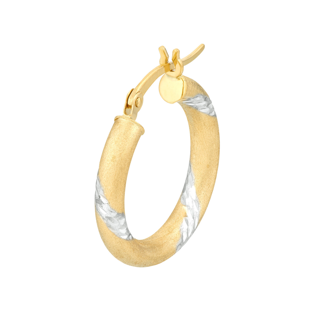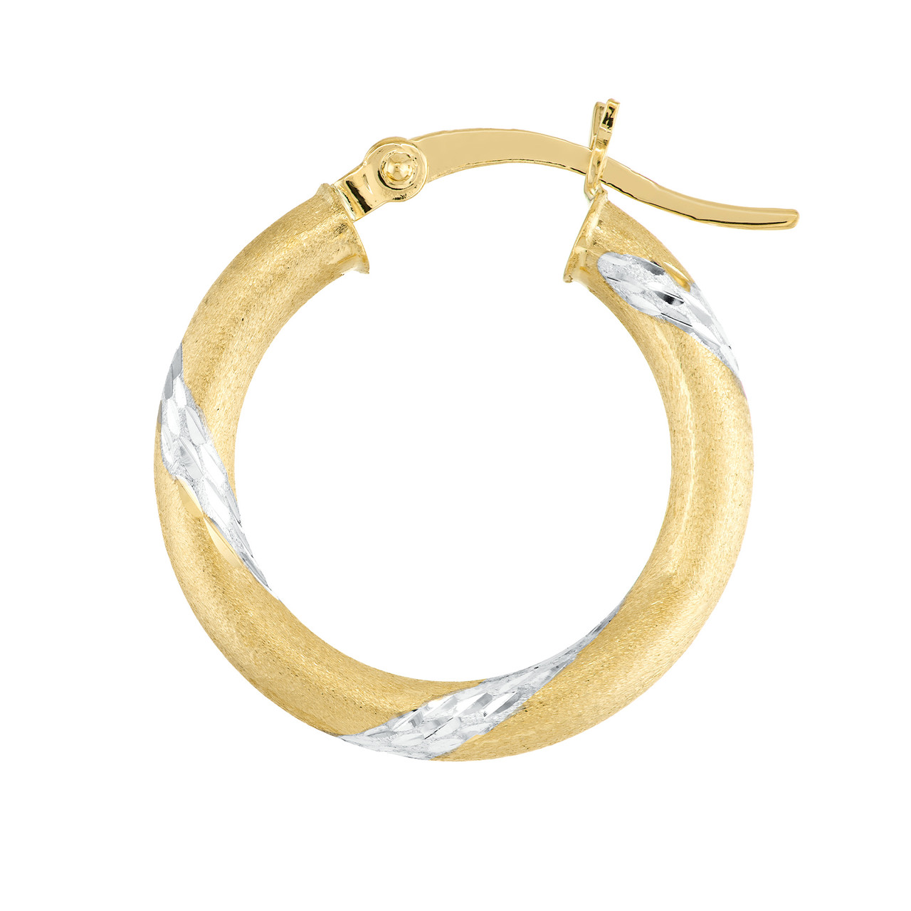 Small Two-Tone Diamond Cut Banded Hoop Earrings