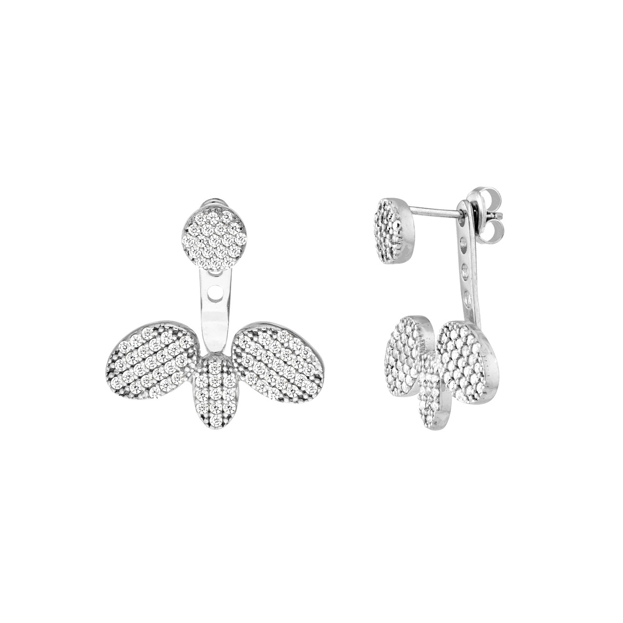 Sterling Silver CZ Diamond-Shape/Oval Trio Earring Jackets