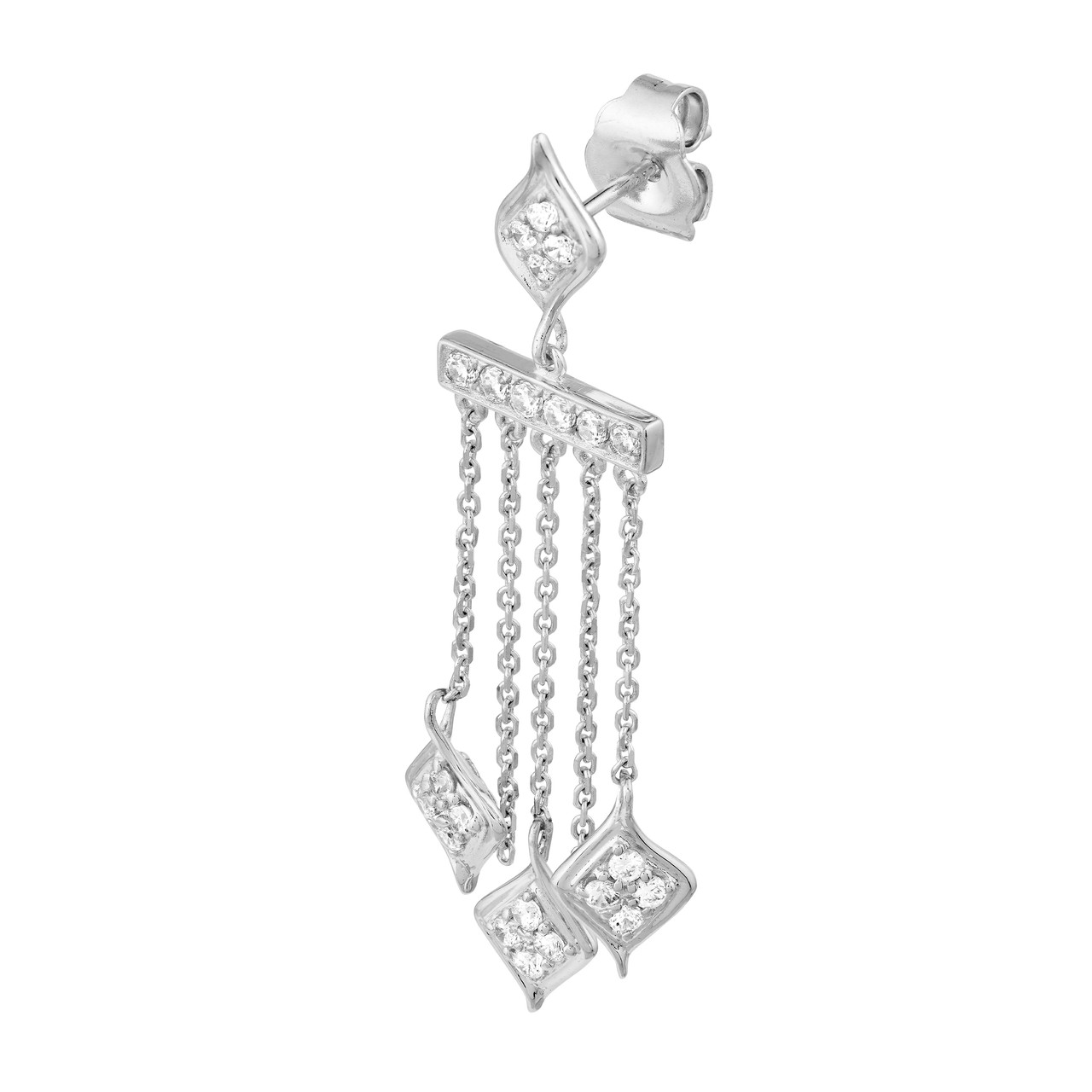 Sterling Silver Diamond-Shaped CZ Chandelier Dangle Earrings