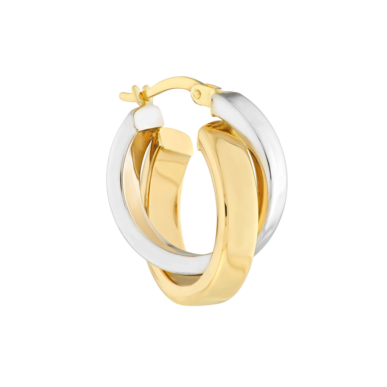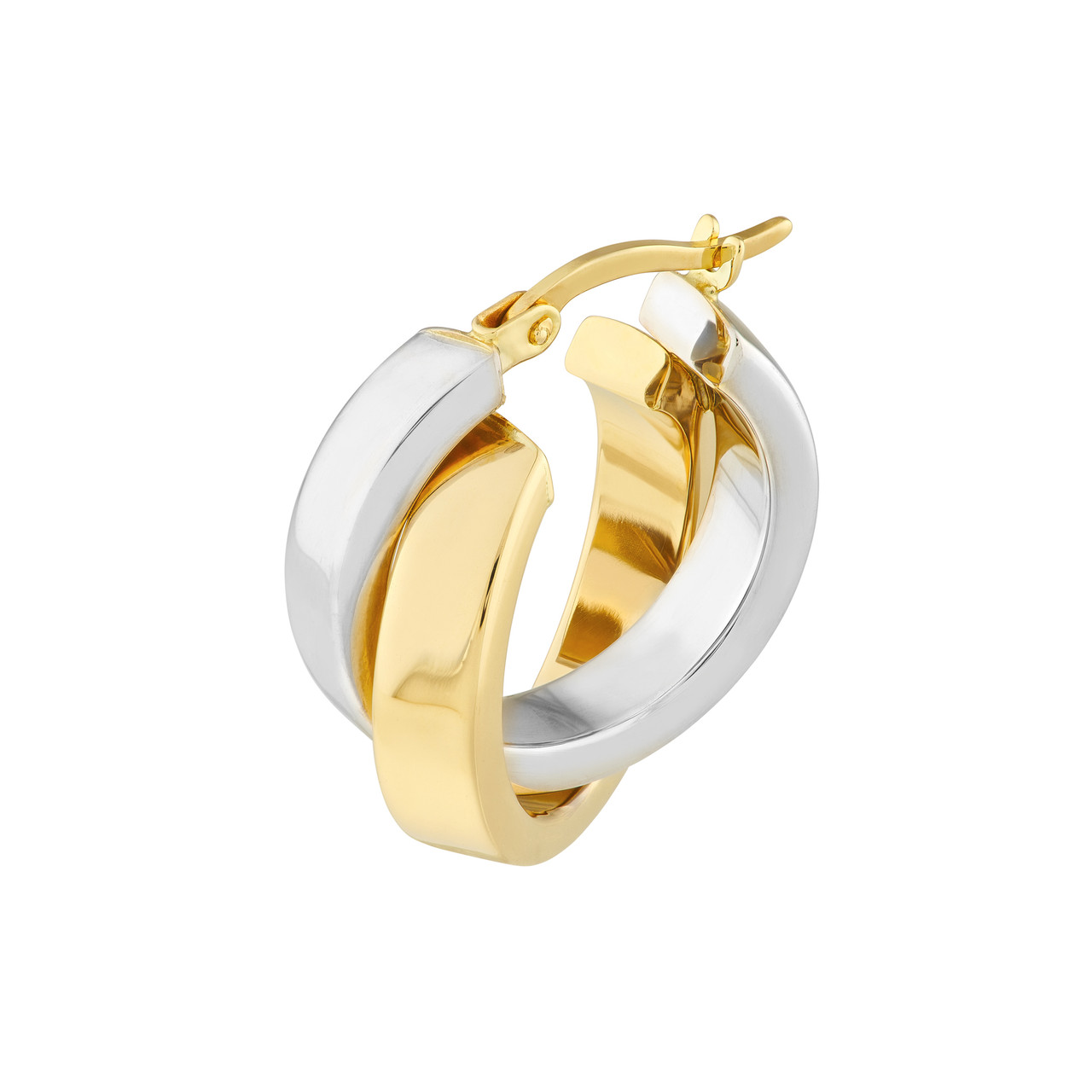 Two-Tone Criss-Cross Tube Round Hoop Earrings