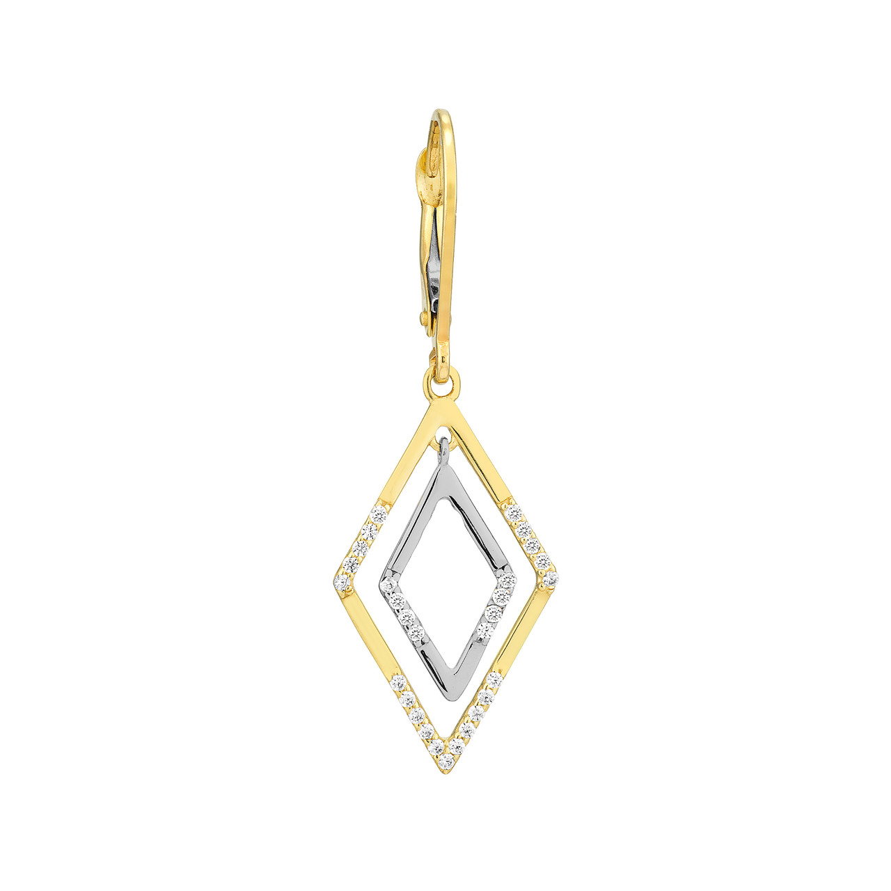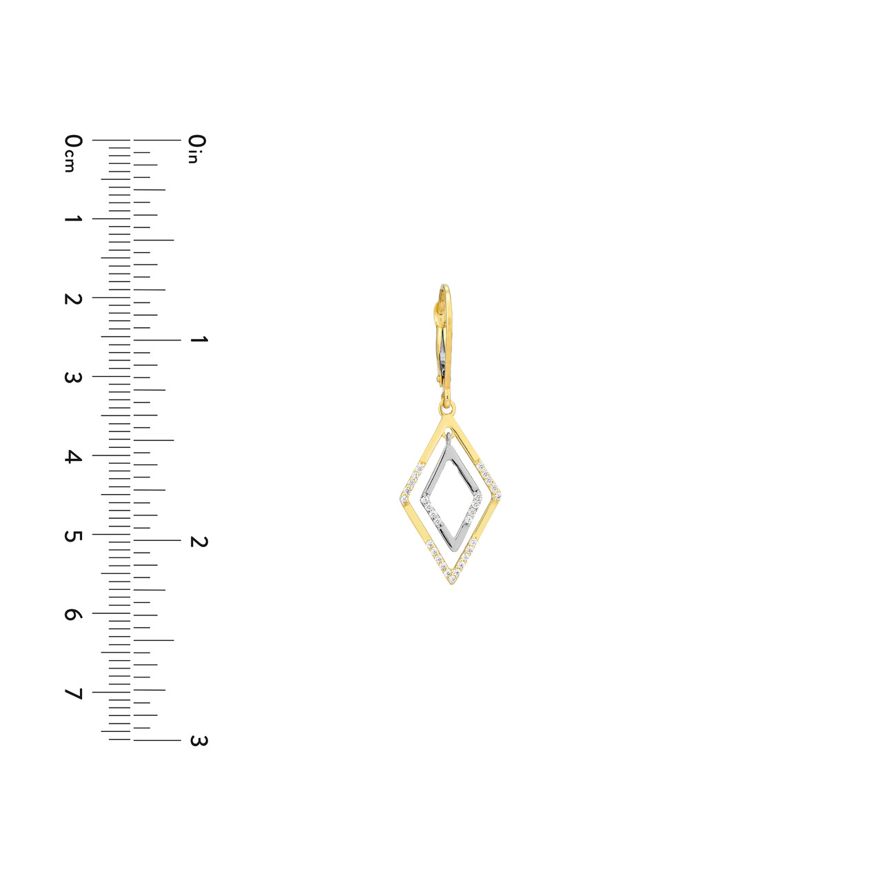 Two-tone CZ Double Framed Rhombus Drop Earrings