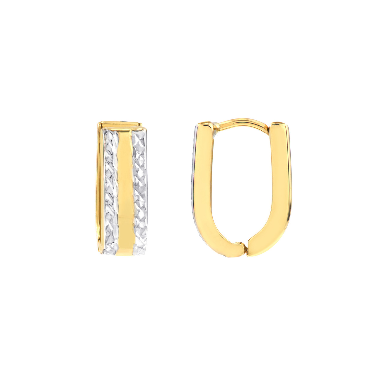 Two-Tone Diamond Cut Edge and Polished Hoop Earrings