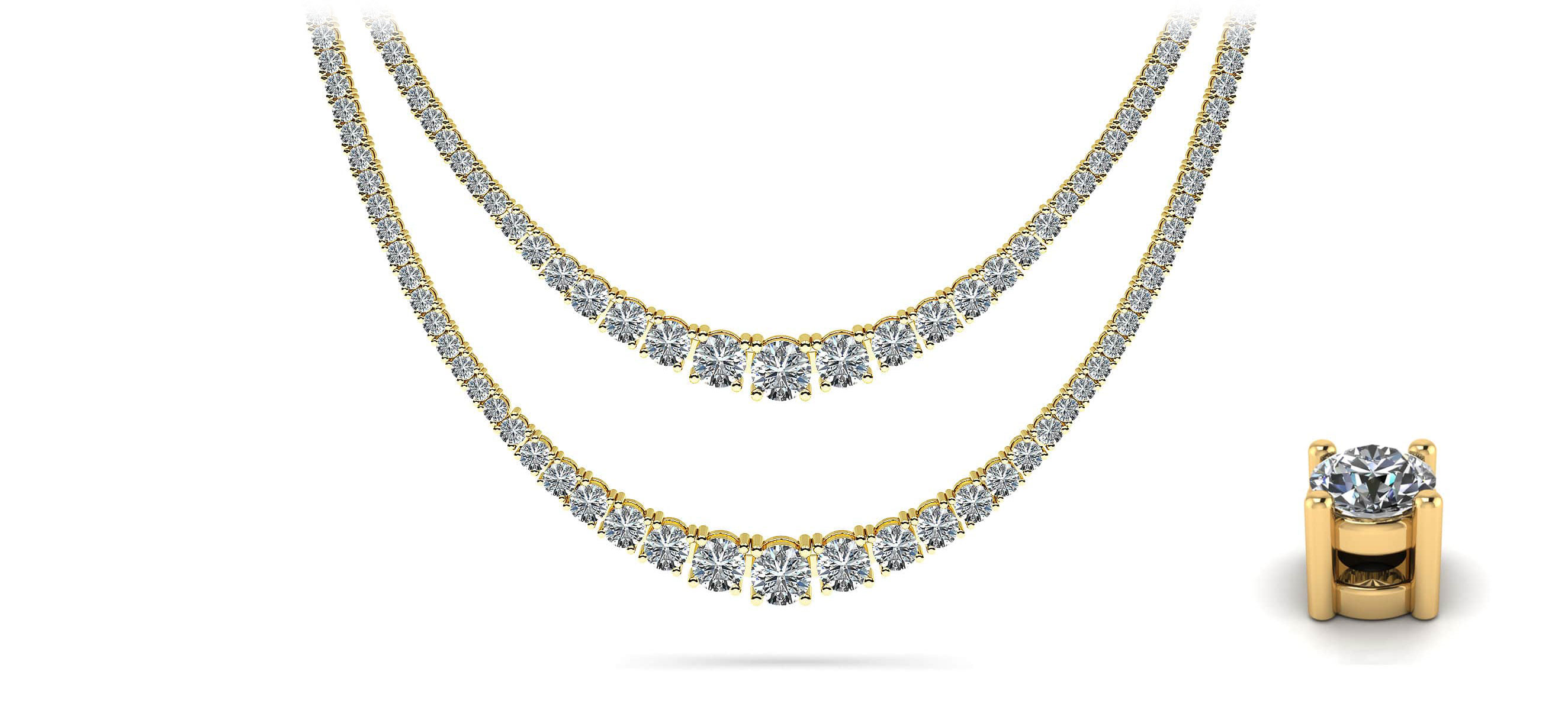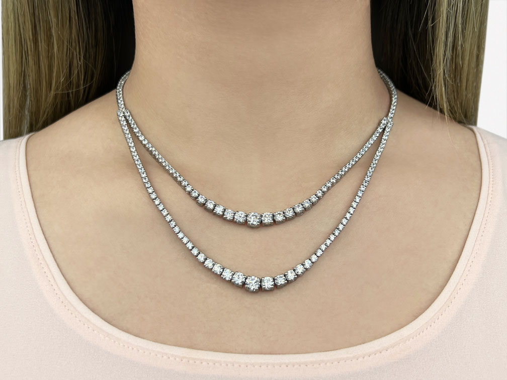 16-Inch 4 Prong Double Strand Graduated Diamond Necklace 10.02 Carat Total Weight