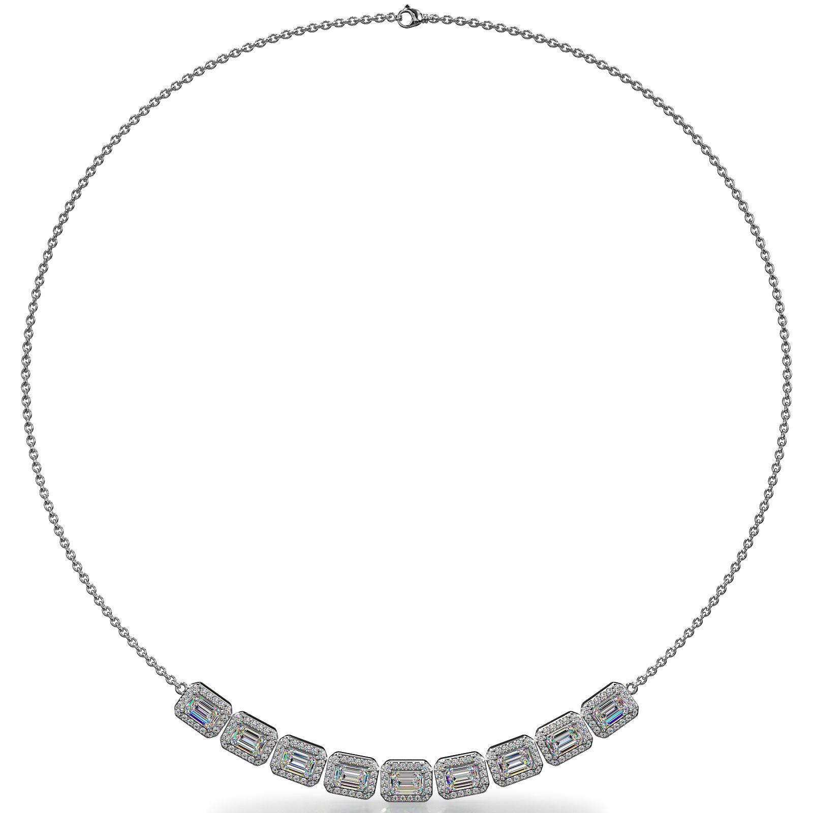 16-Inch Emerald Cu Diamond Necklace with Surrounding Diamonds 3.43 Carat Total Weight