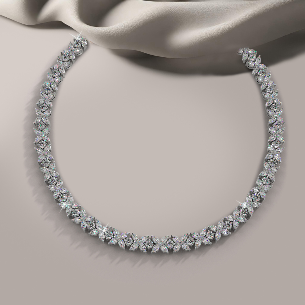 16-Inch Flowers of Marquise Dimond Tennis Necklace 28.4 Carat Total Weight