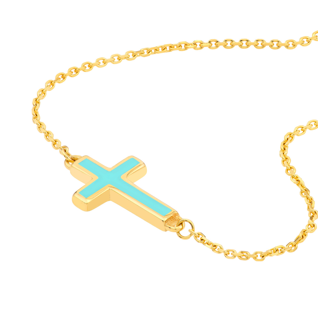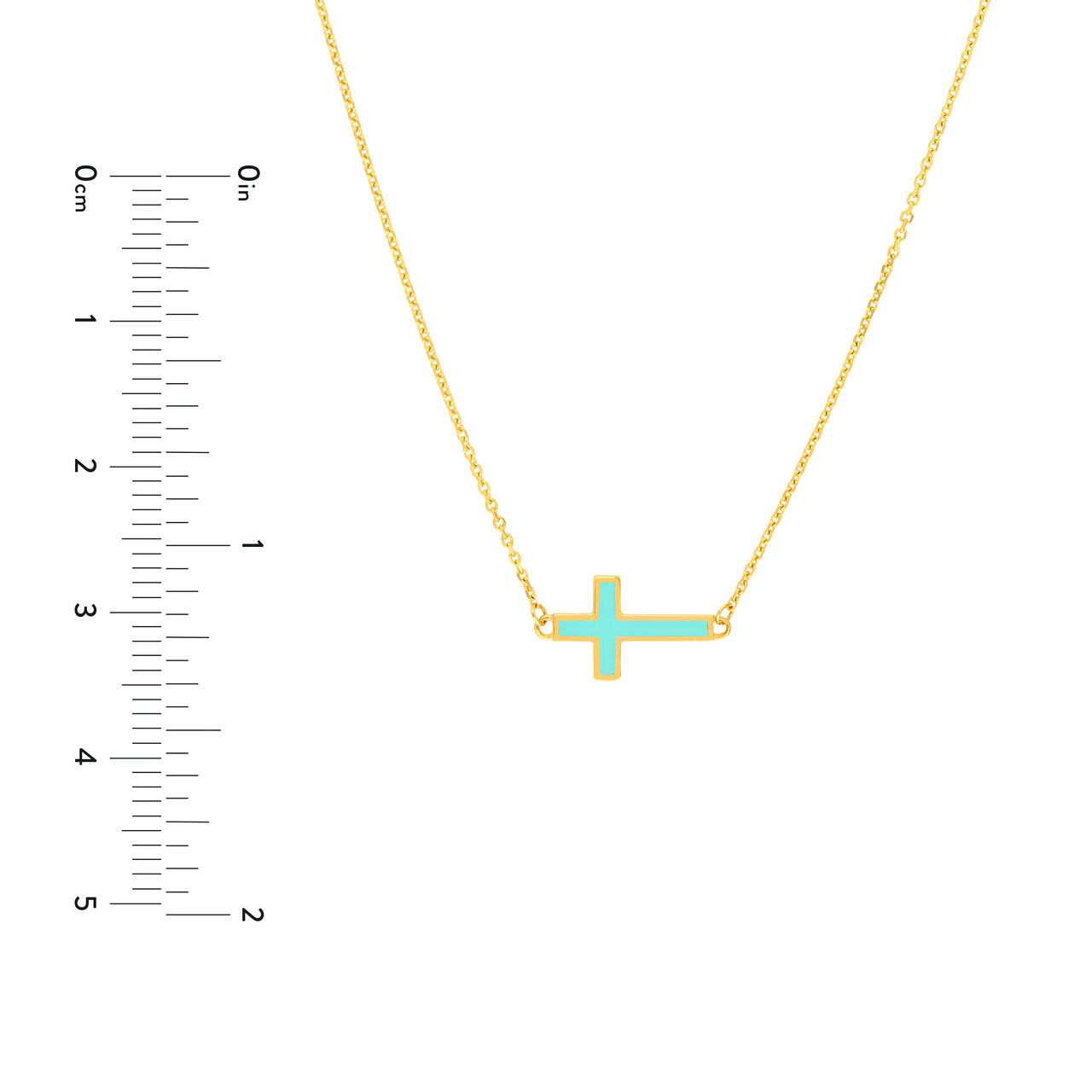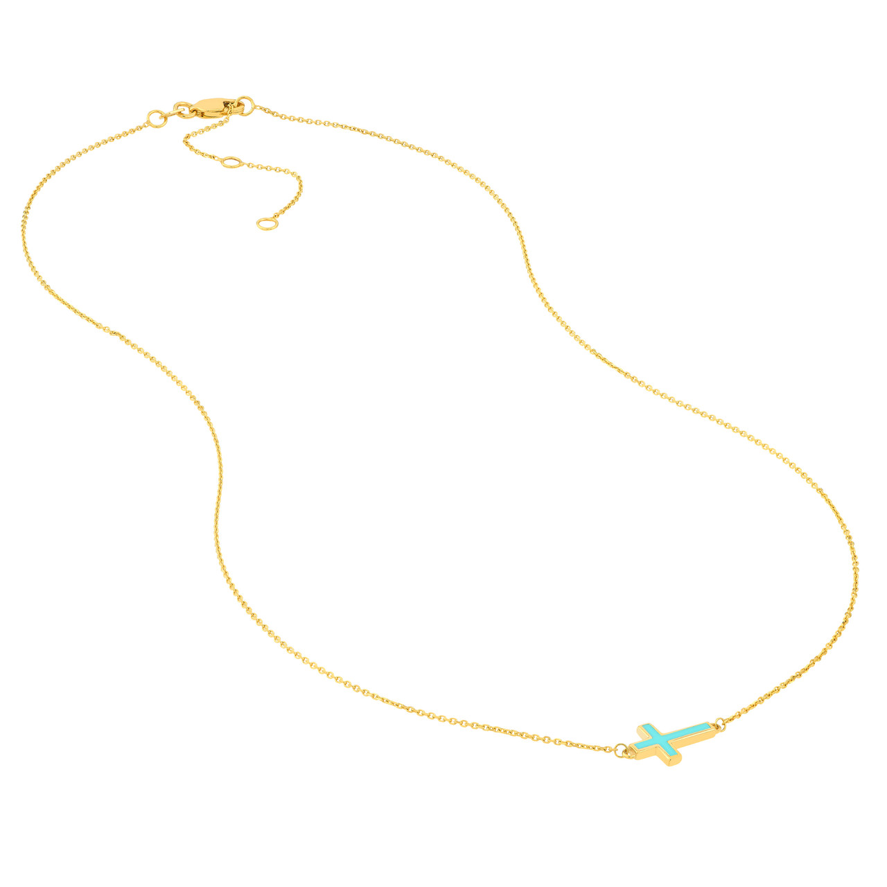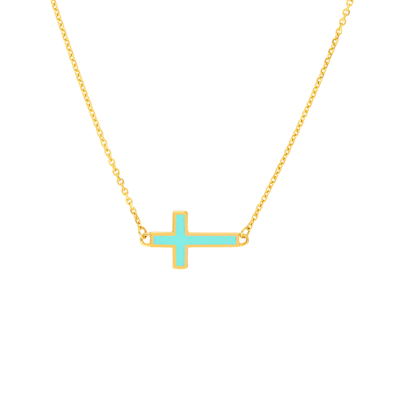 18-Inch Light Turquoise Enamel Sideways Cross Necklace