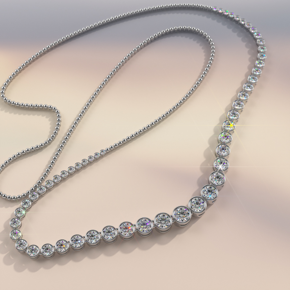 16-Inch Round Bezel Set Diamond Necklace with Shiny Link Back 2.0 Carat Total Weight