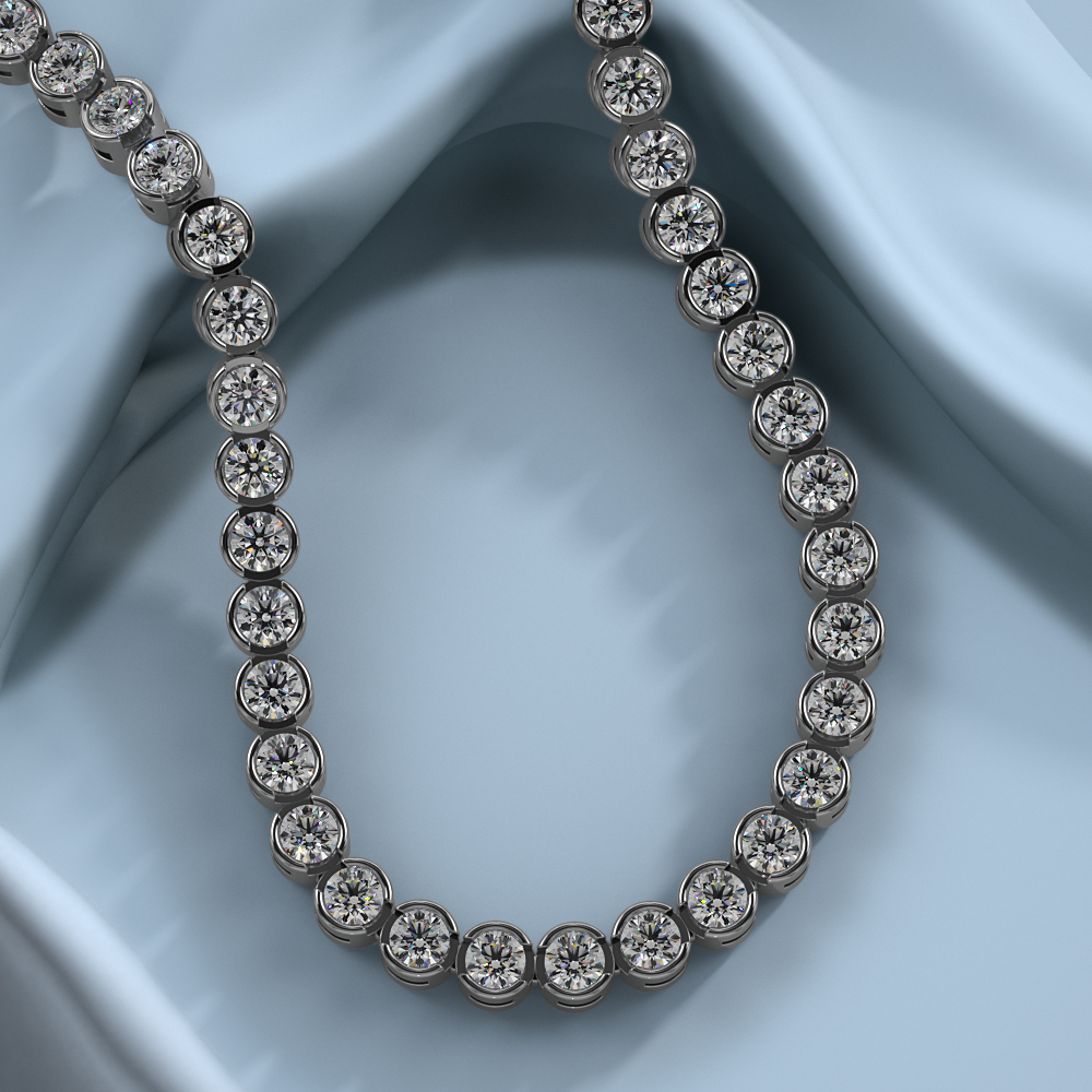 16-Inch Round Diamond Tennis Necklace in Half Bezel Setting 5.11 Carat Total Weight