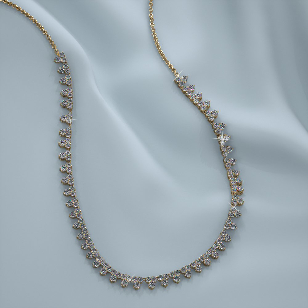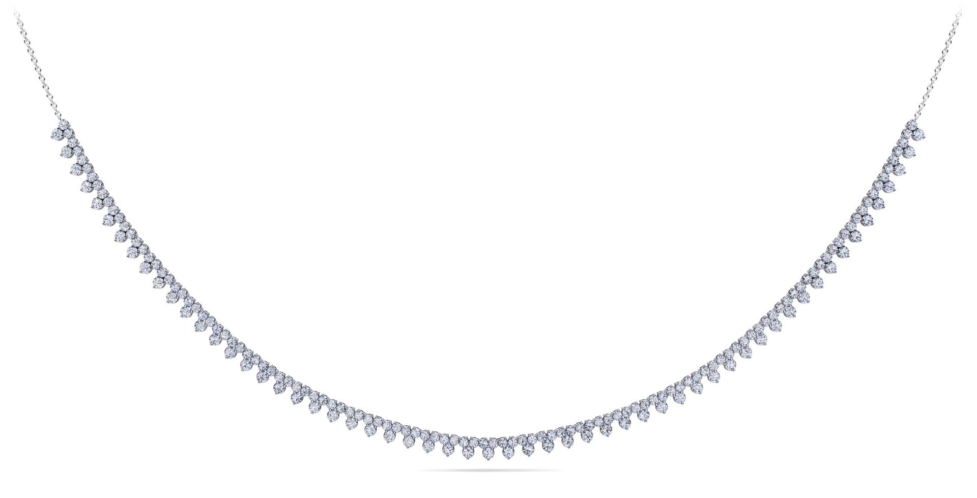 16-Inch Three Stone Brilliant Tennis Necklace 2.96 Carat Total Weight