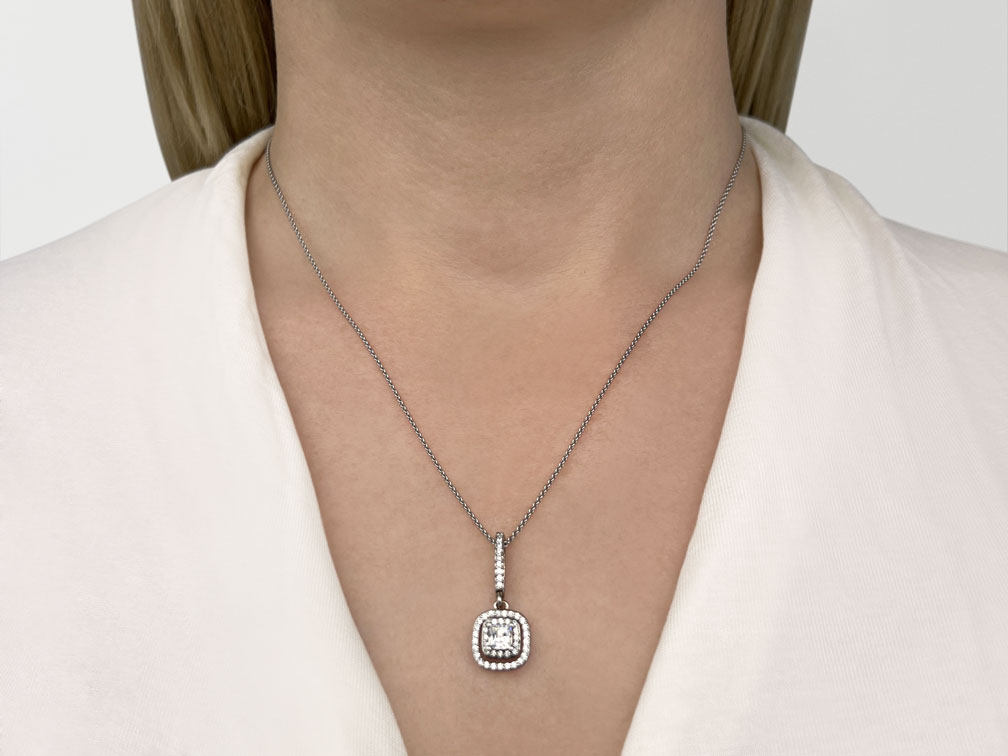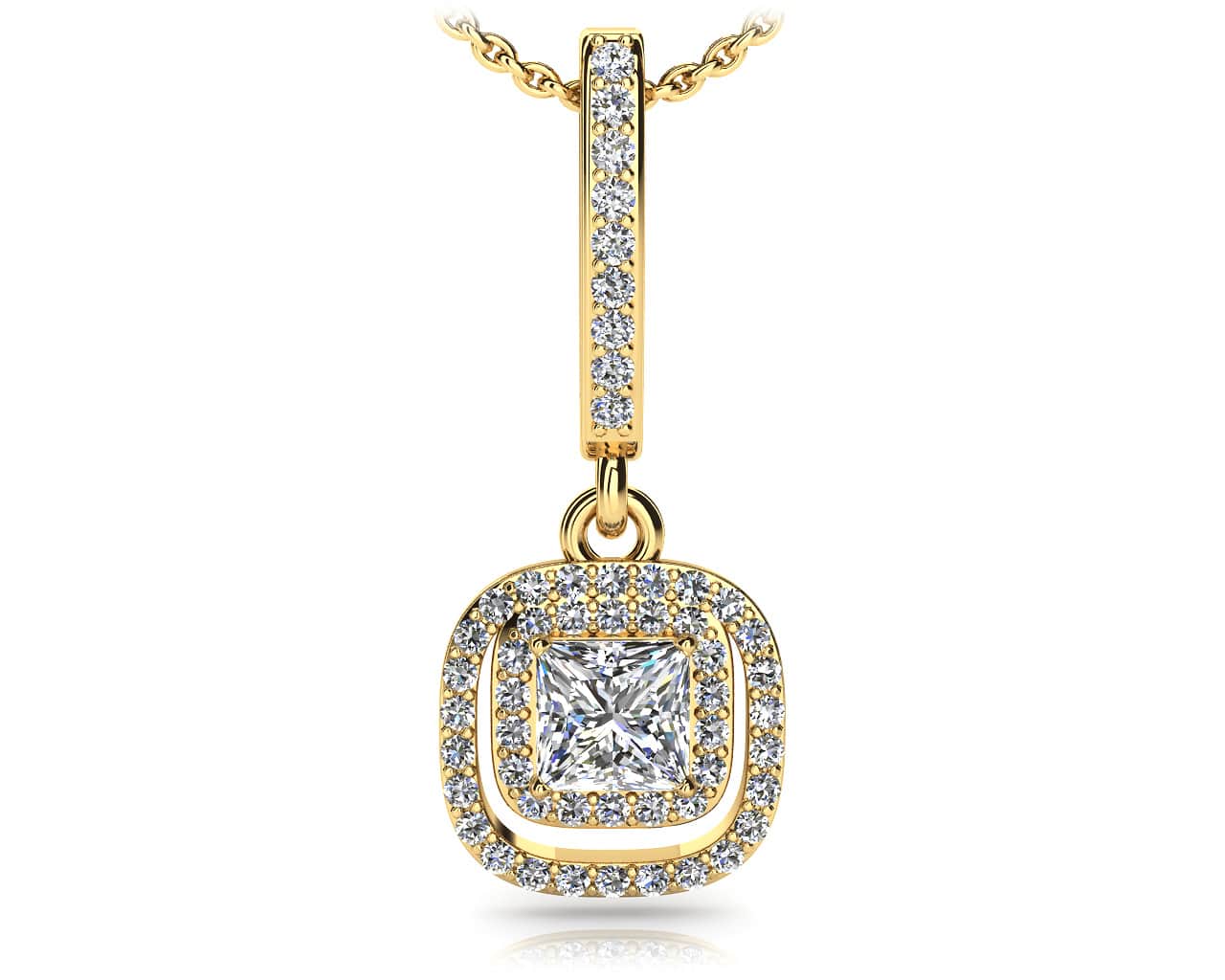 Cushion Drop Double Halo Diamond Pendant 1/2 Carat Total Weight
