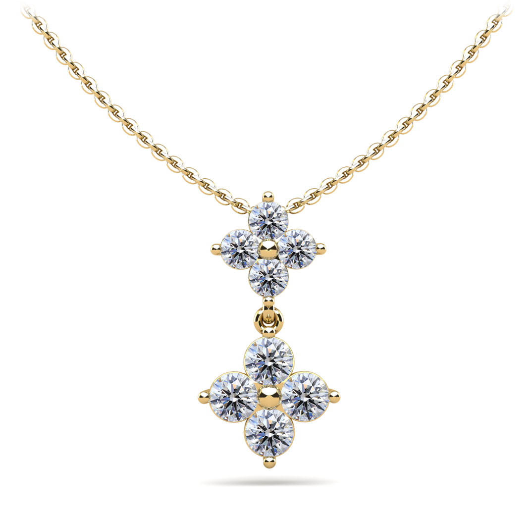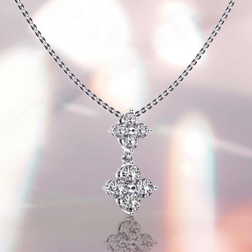 Diamond Pendant with Two Clusters of Round Diamonds 1.0 Carat Total Weight