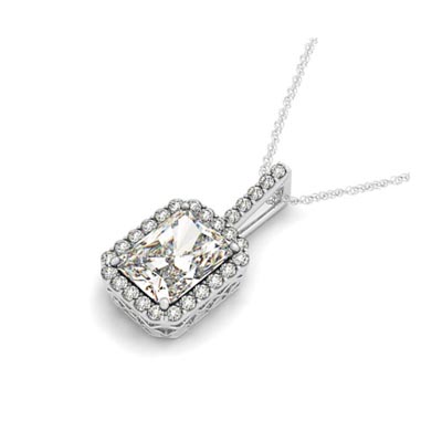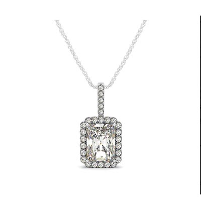 Drop Three Prong Halo Radiant Diamond Pendant 3/8 Carat Total Weight