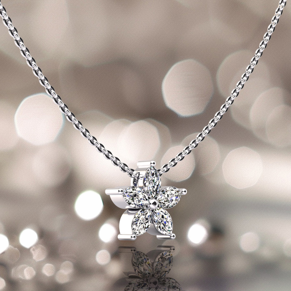 Elegant Diamond Pendant with 5 Marquise Shaped Diamonds 0.55 Carat Total Weight