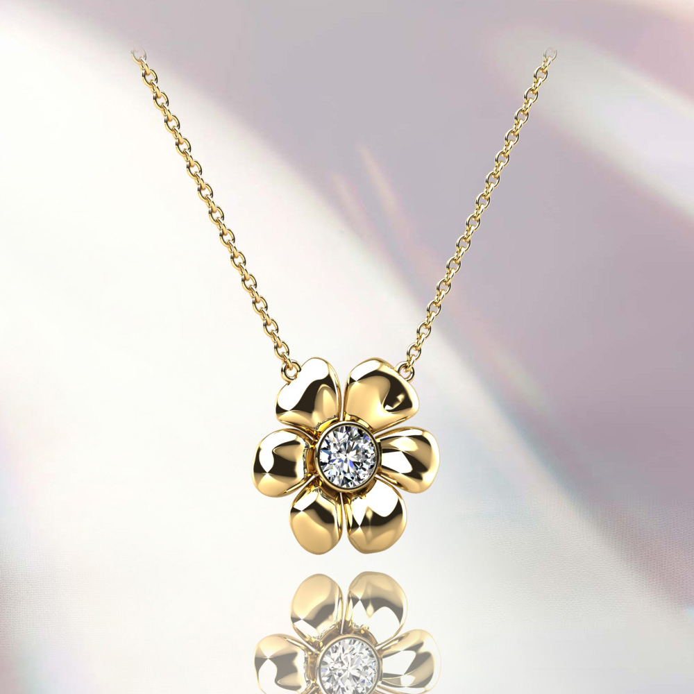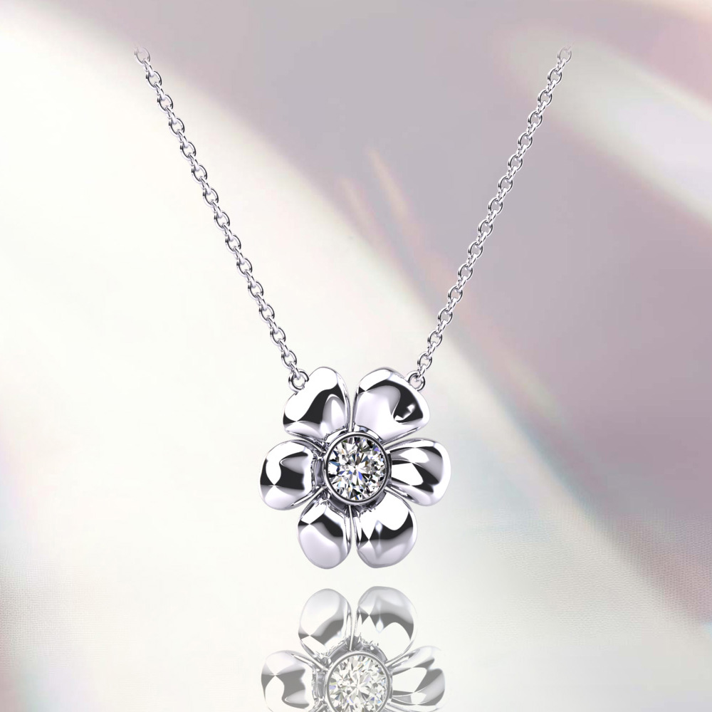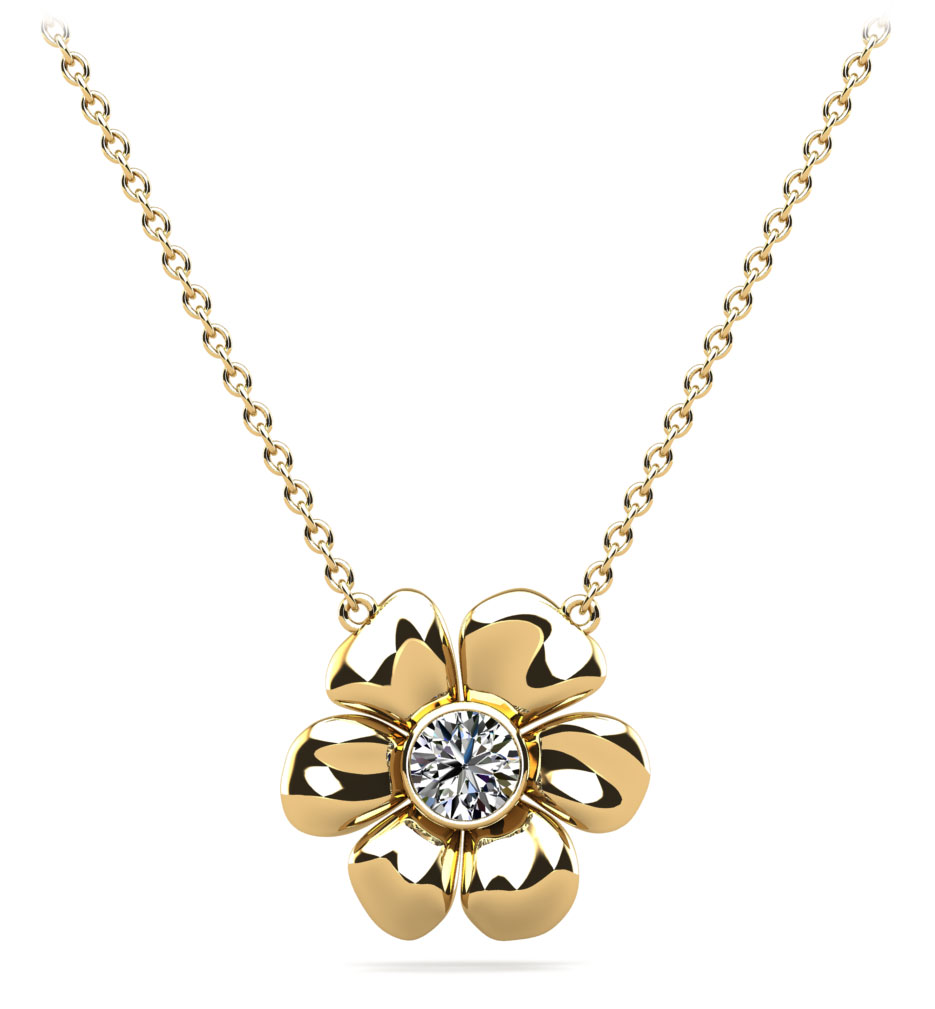 Floral Diamond Pendant with Round Bezel 0.05 Carat Total Weight