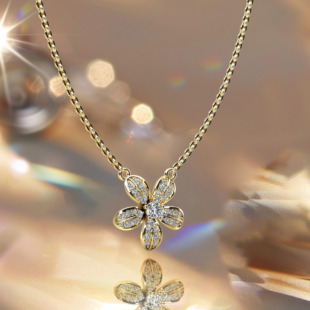 Floral Diamond Pendant with Sparkling Petals 1/3 Carat Total Weight