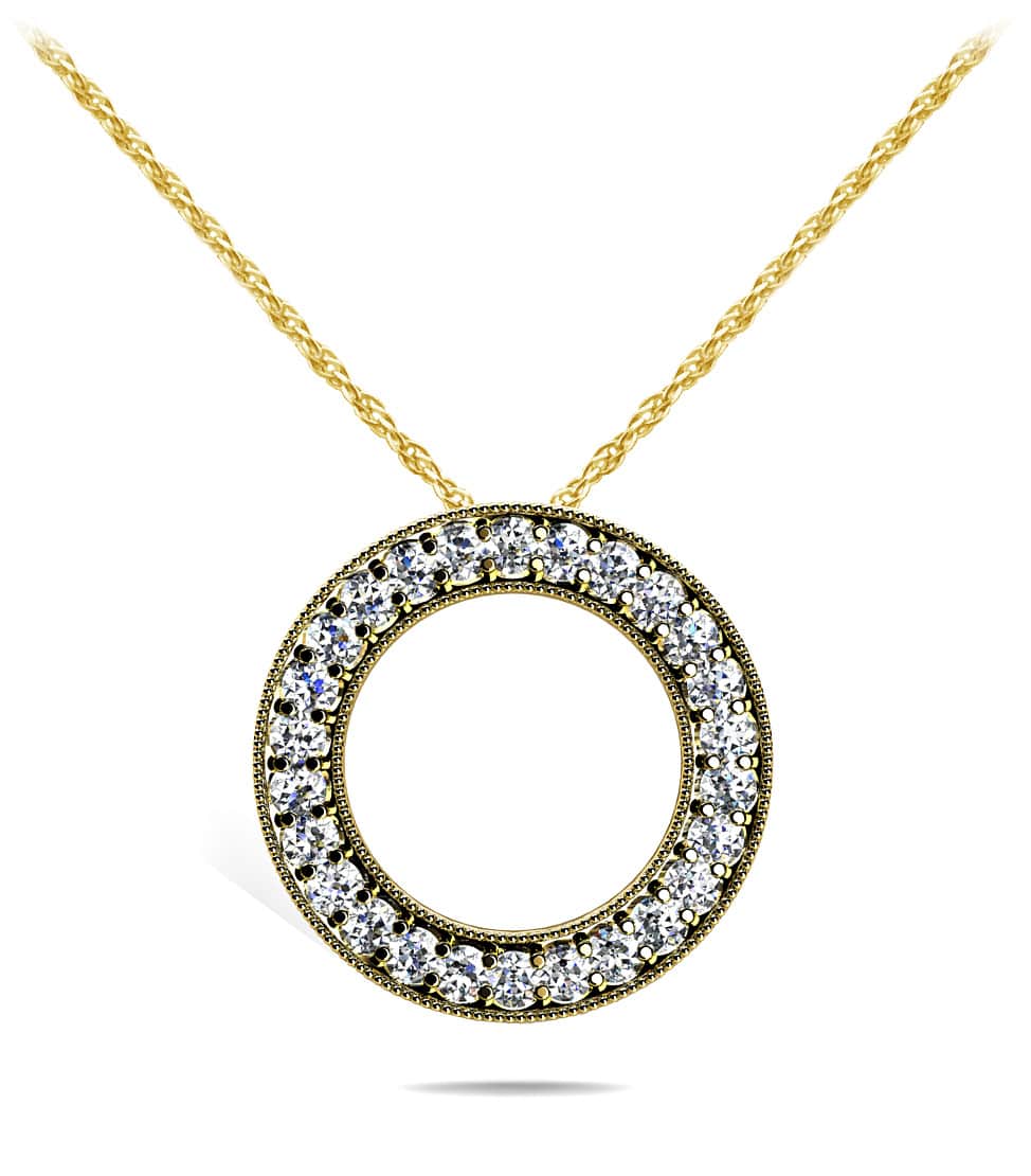 Milgrain Diamond Circle Pendant 0.45 Carat Total Weight