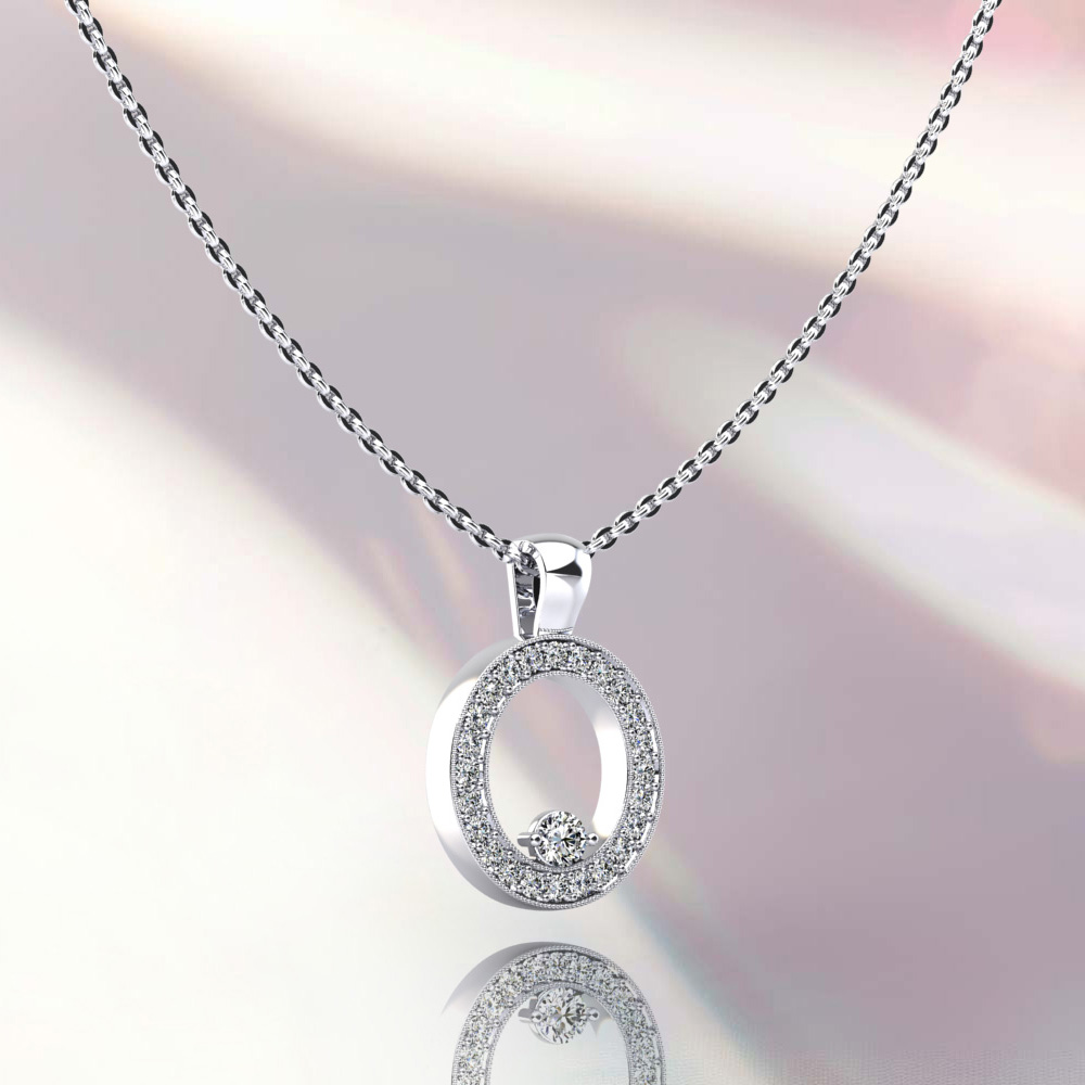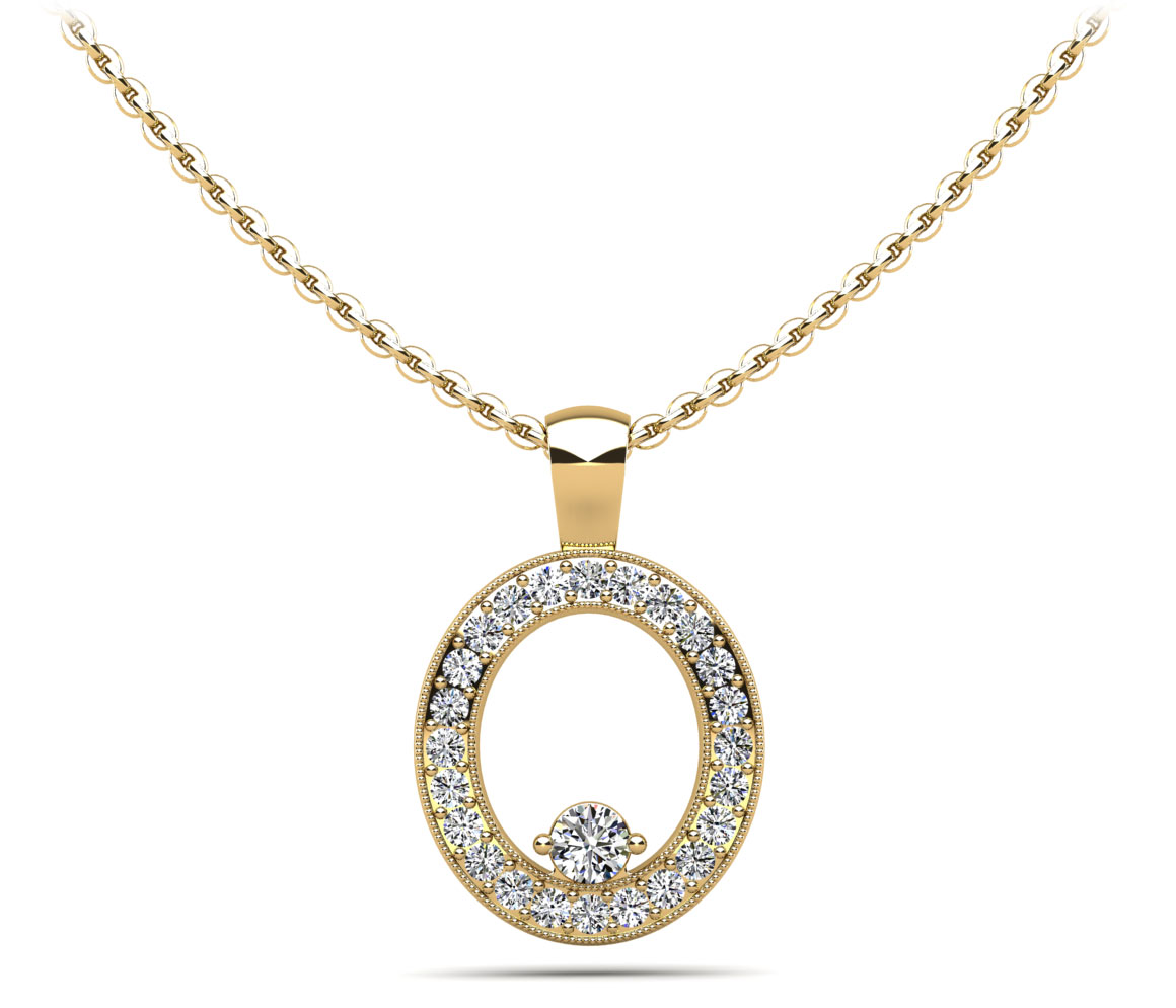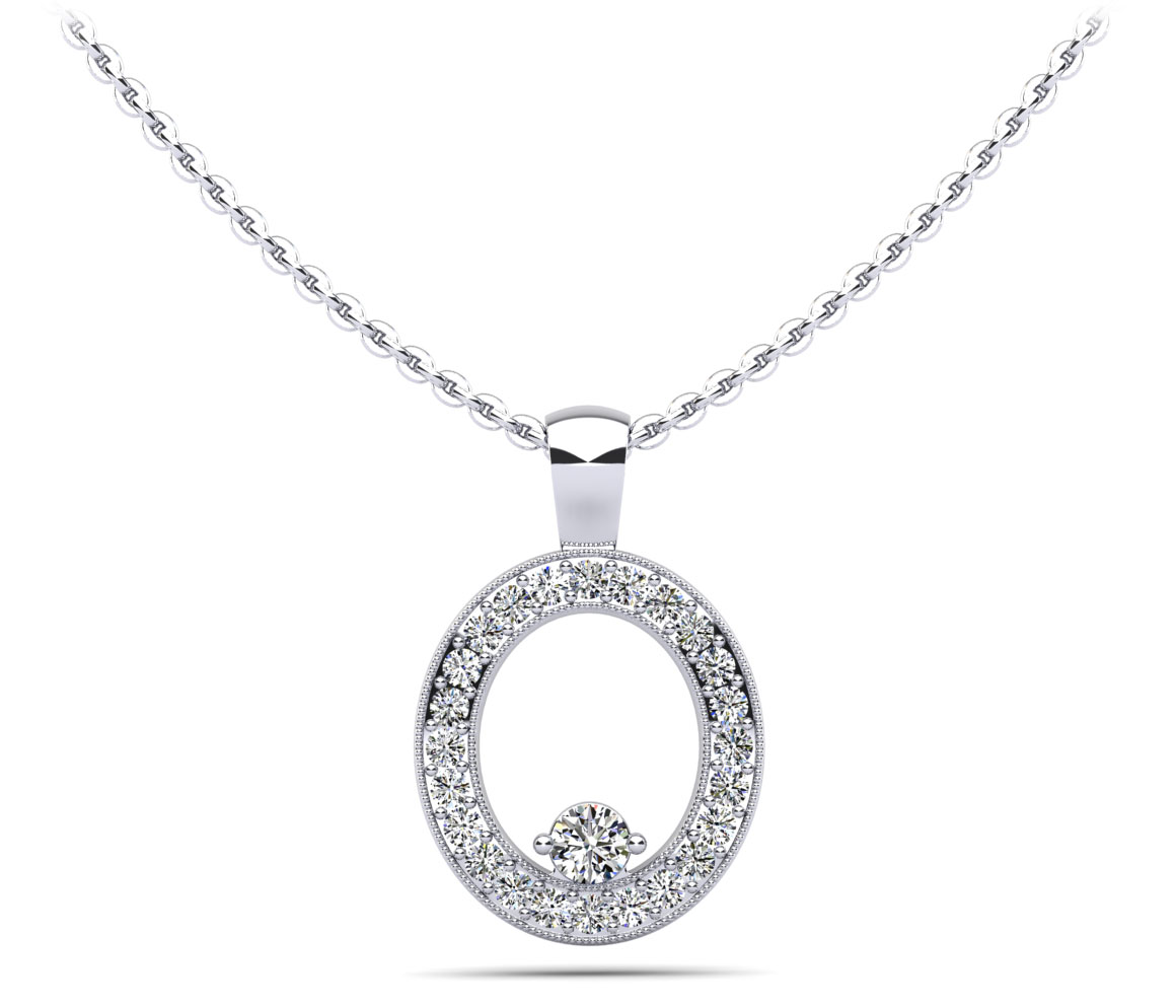 Oval Pendant with Surrounding Diamonds and Centerstone 1/2 Carat Total Weight