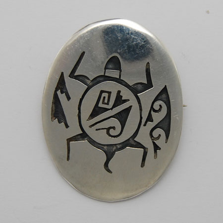 30mm x 39mm Sterling Silver Oval Turtle Pin/Pendant - Daren Saas (artist)