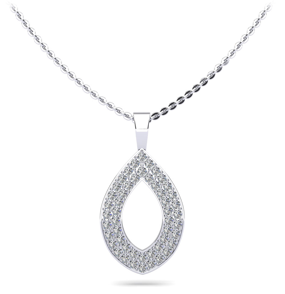 Tear Drop Diamond Pendant with Three Row Design 3/4 Carat Total Weight