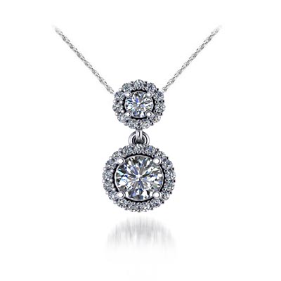 Two Stone Halo Diamond Pendant 0.54 Carat Total Weight