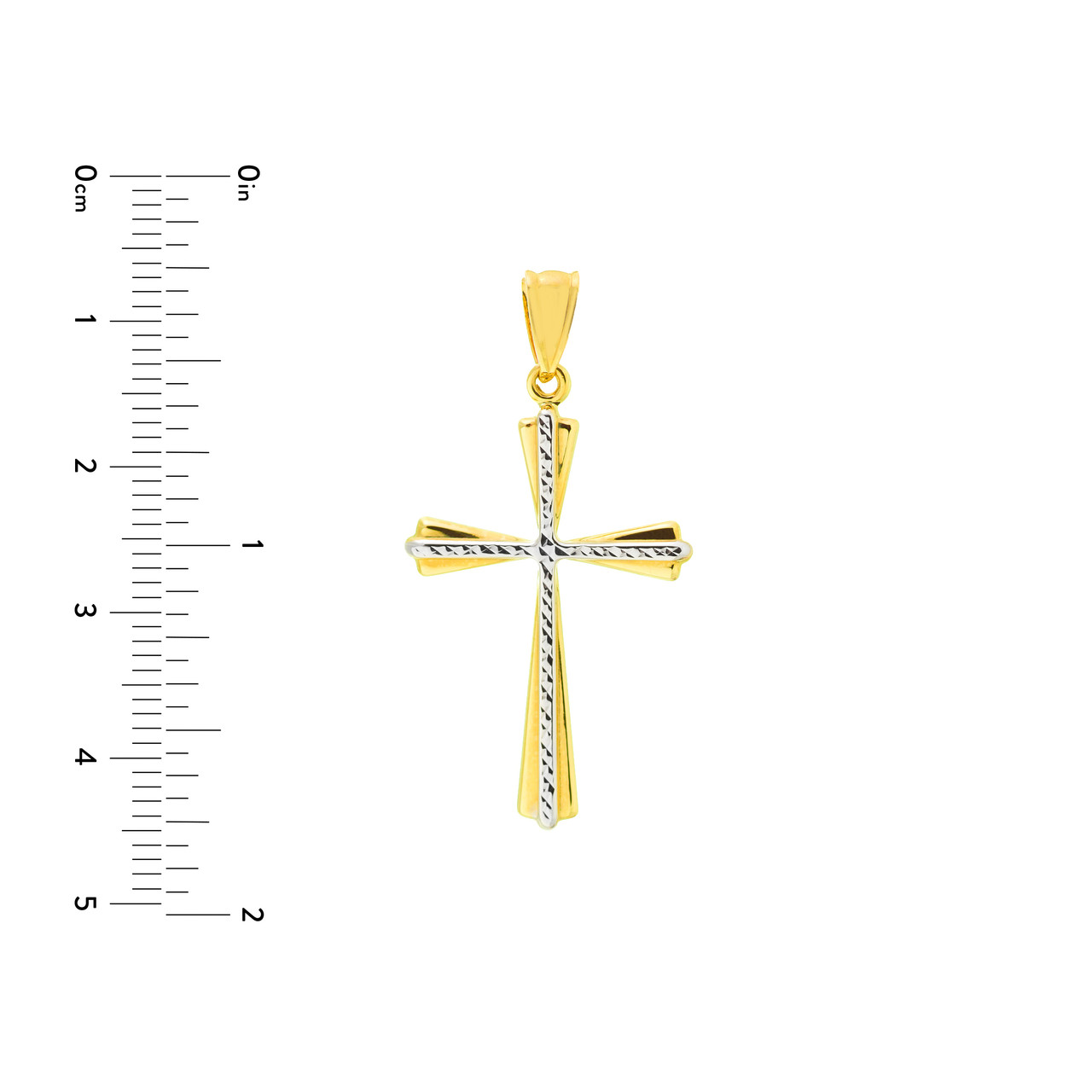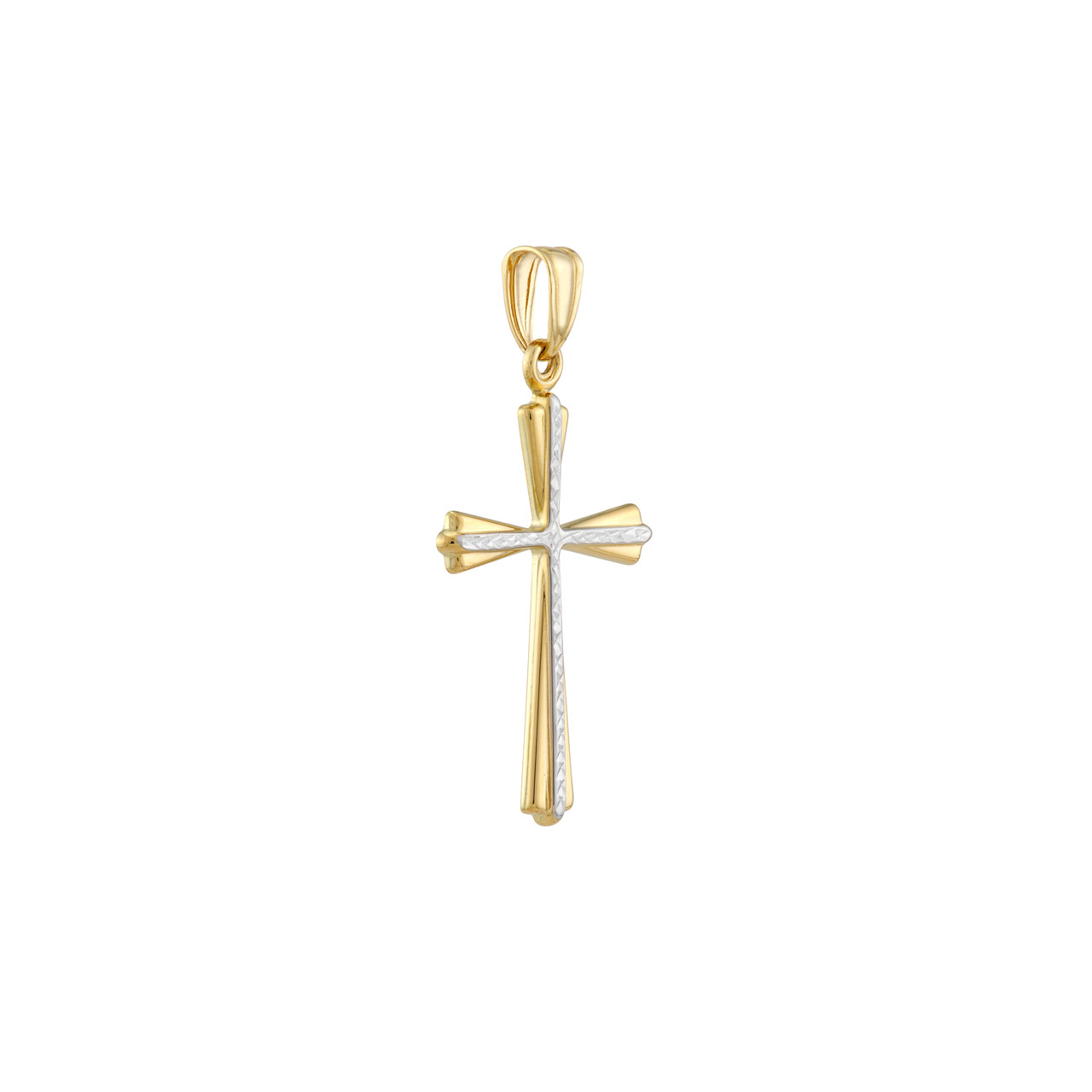 Two Tone High Polished Base with Diamond Cut Cross Pendant