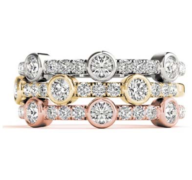 3 Stone Bezel Diamond Stackable Ring 3/8 Carat Total Weight